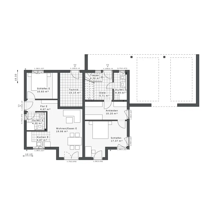 Unterschiedliche Hausvarianten mit vier Ausbaustufen, als reines Ausbau ab 159.999€ bis hin Schlüsselfertig ab 332.999€